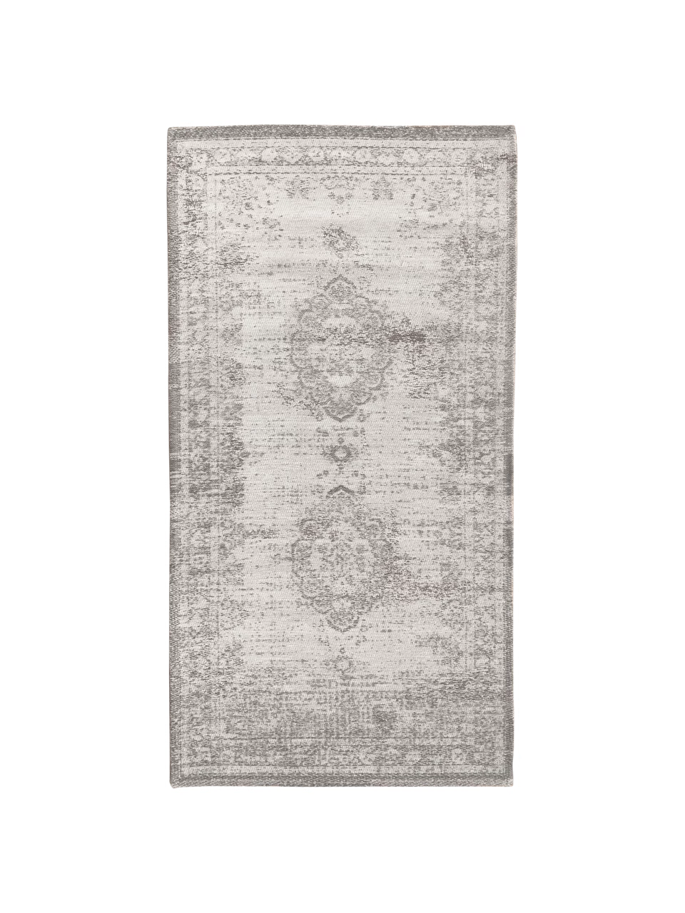 Auf Jacquard-Webstühlen gewebt, besitzt dieser Teppich mehrere Strukturschichten, die ihm seinen charakteristischen Vintagelook verleihen. Das klassische, zentrierte Vintage-Motiv macht ihn zum Hingucker in jedem Zuhause.