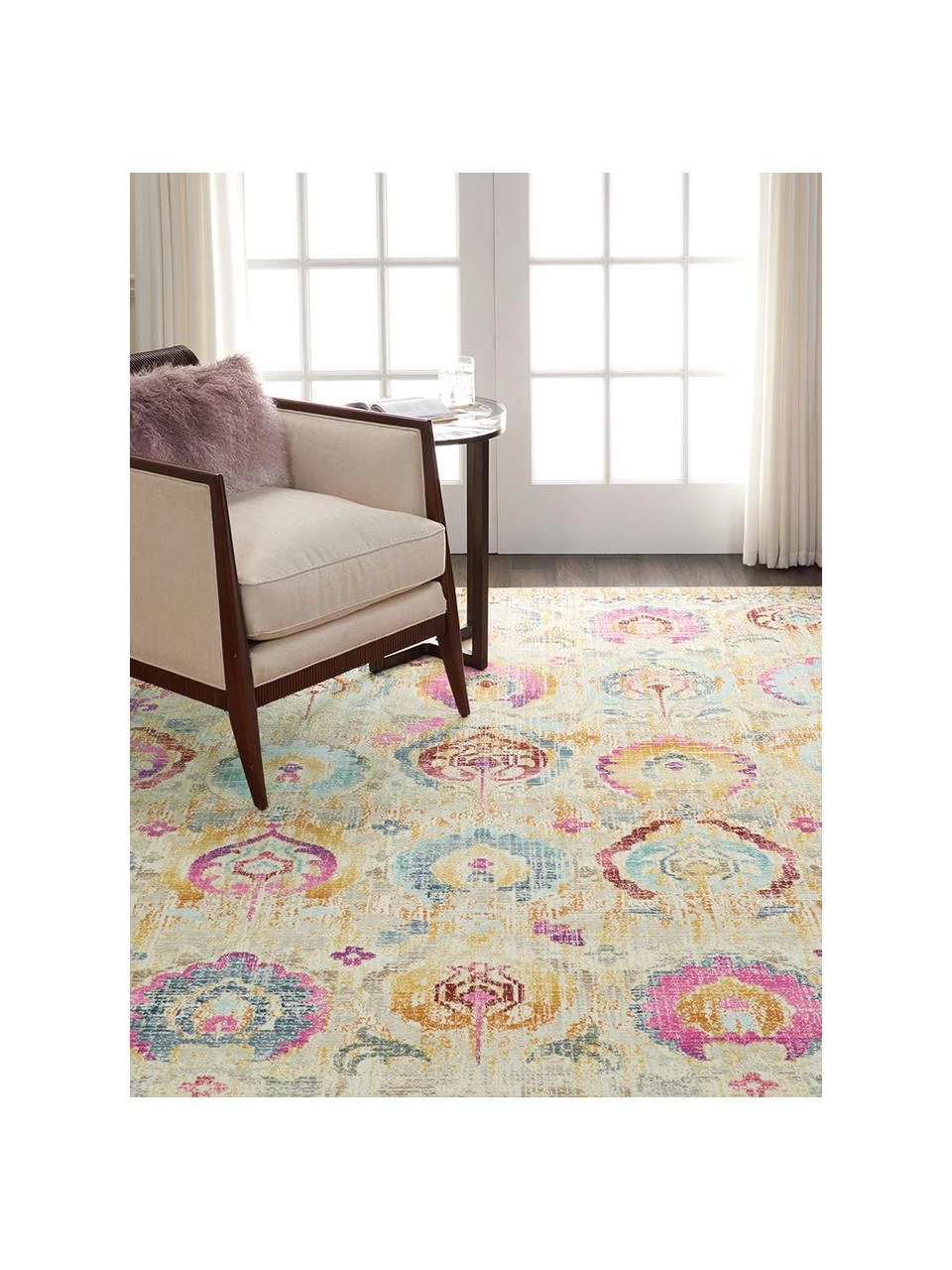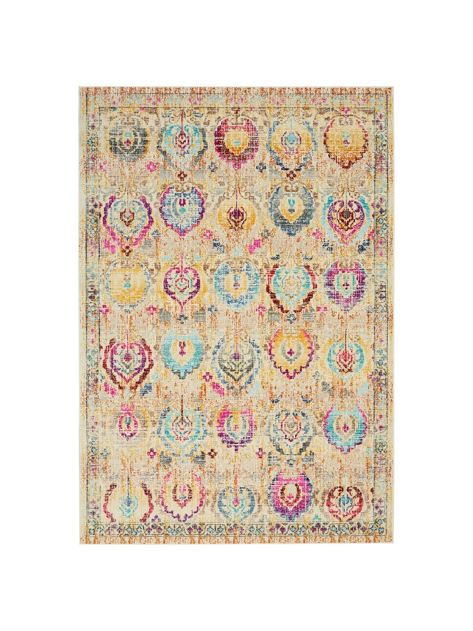 Dieser Teppich überzeugt durch sein wunderschönes Vintage-Muster in aufälliger Farbgebung und wird zum echten Hingucker in jedem Zuhause.