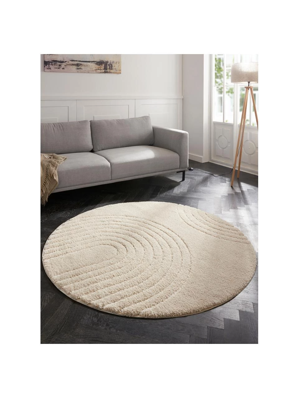 – Runder Hochflor-Teppich mit geometrischem Muster