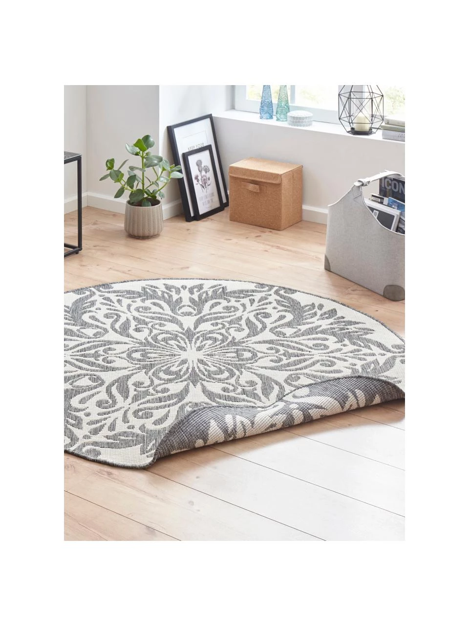 Runder In- & Outdoor-Wendeteppich Madrid in Grau/Creme, Ø 140 cm (Größe M)