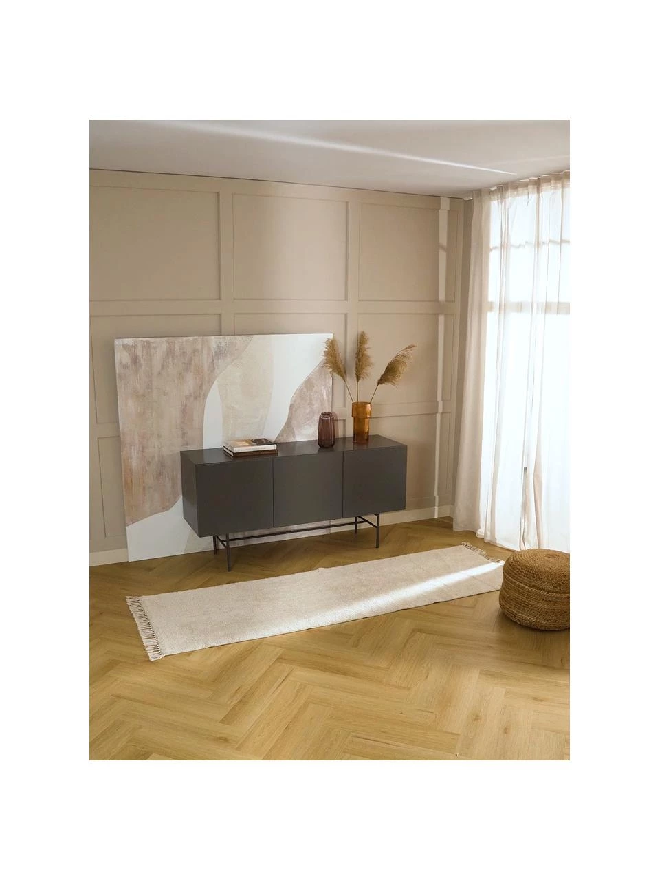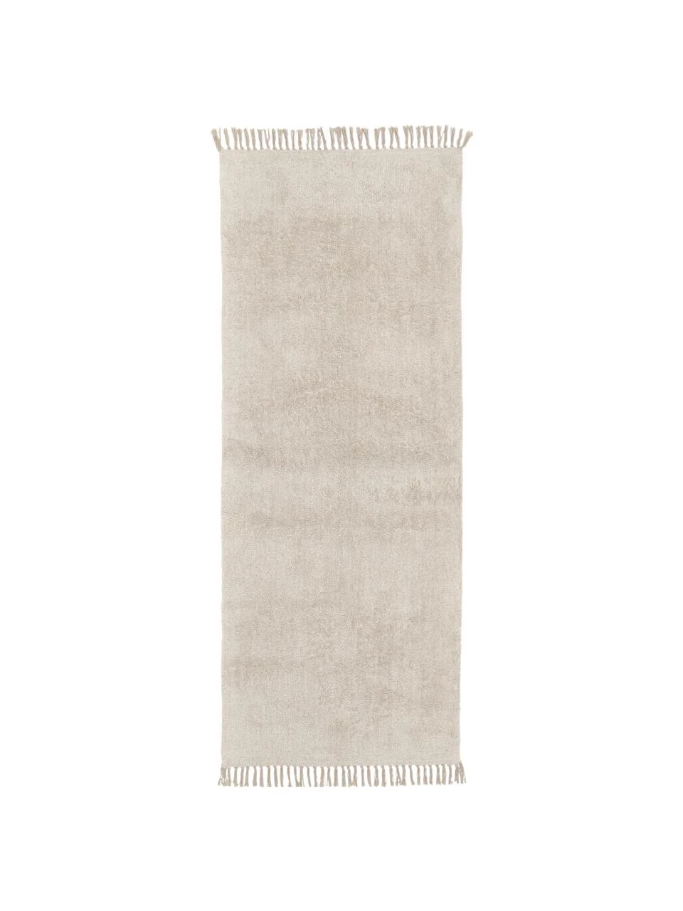 – Handgewebter und -getufteter Baumwollläufer mit Fransen